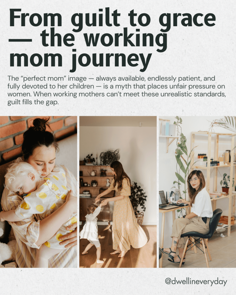 The “perfect mom” image — always available, endlessly patient, and fully devoted to her children — is a myth that places unfair pressure on women. When working mothers can’t meet these unrealistic standards, guilt fills the gap.