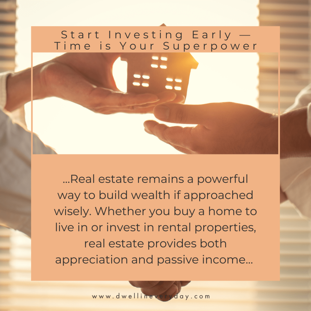 Real estate remains a powerful way to build wealth if approached wisely. Whether you buy a home to live in or invest in rental properties, real estate provides both appreciation and passive income. For young professionals, house-hacking (renting out part of your home) is an excellent way to lower living costs.